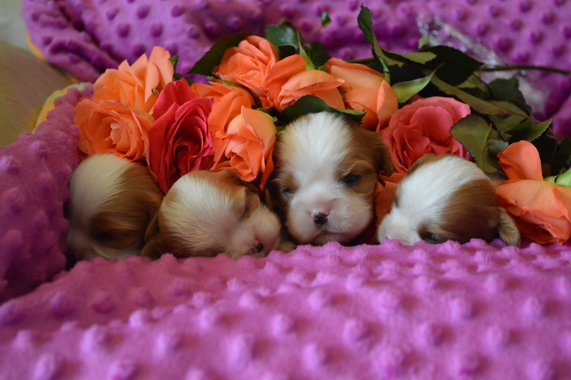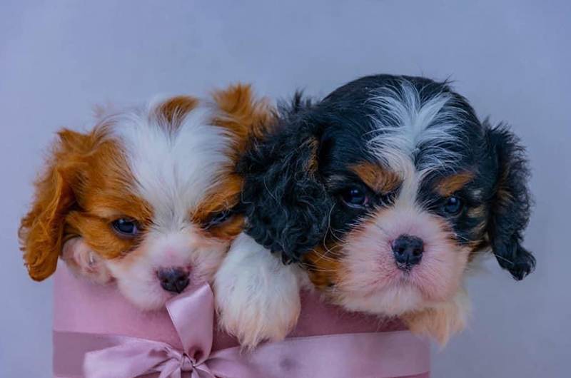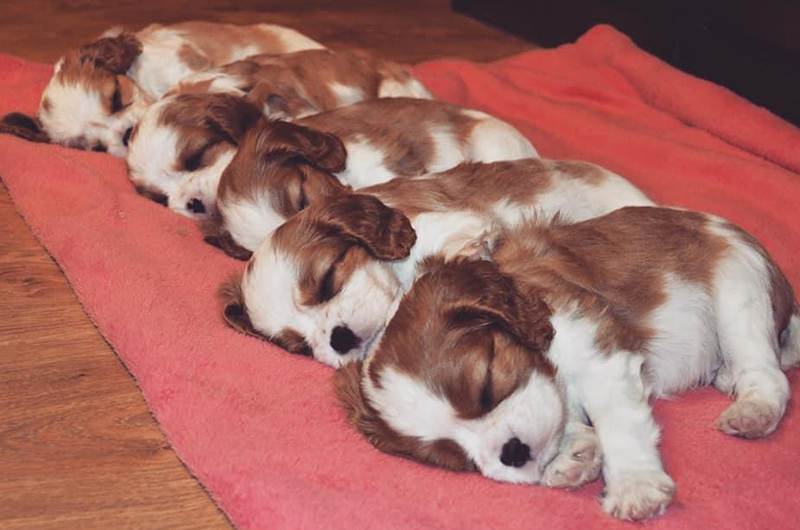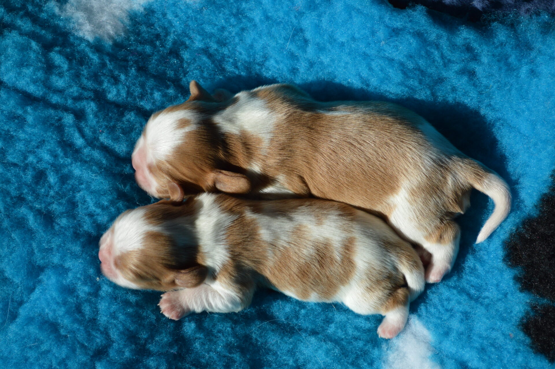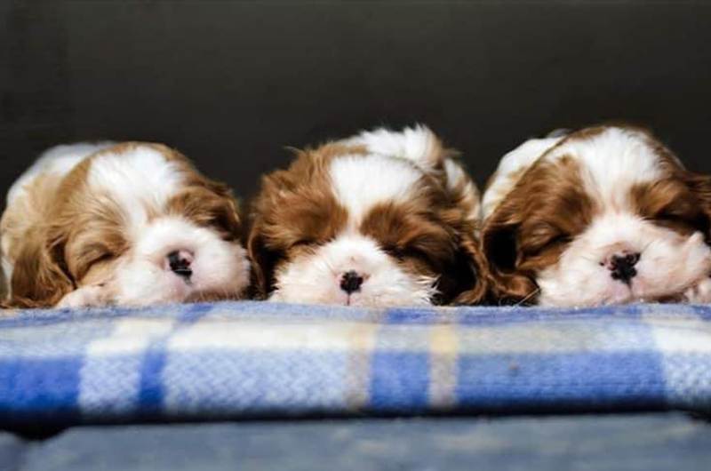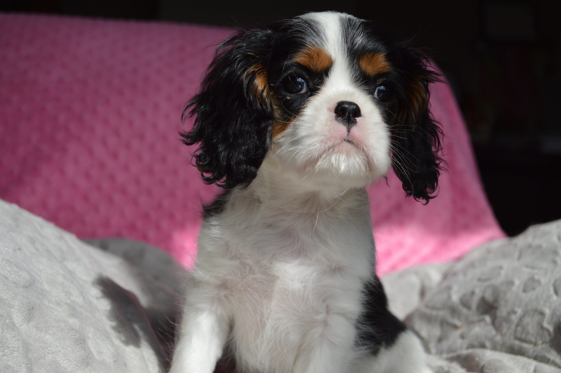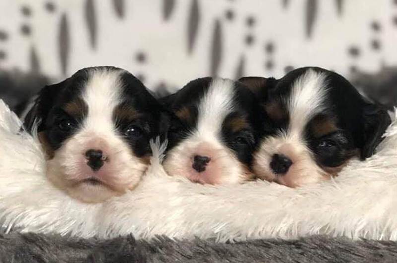 2 suczki blenheim, 1 suczka tricolor, 1 piesek tricolor, 1 piesek blenheim