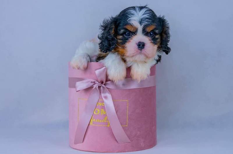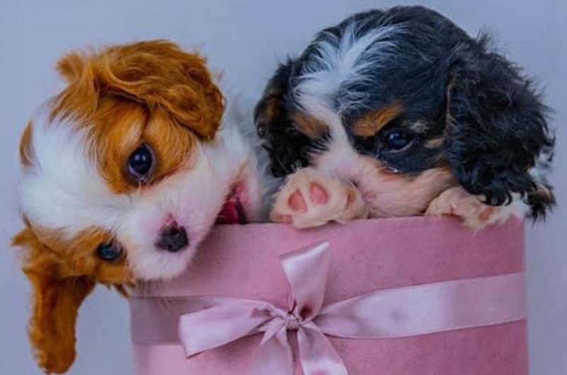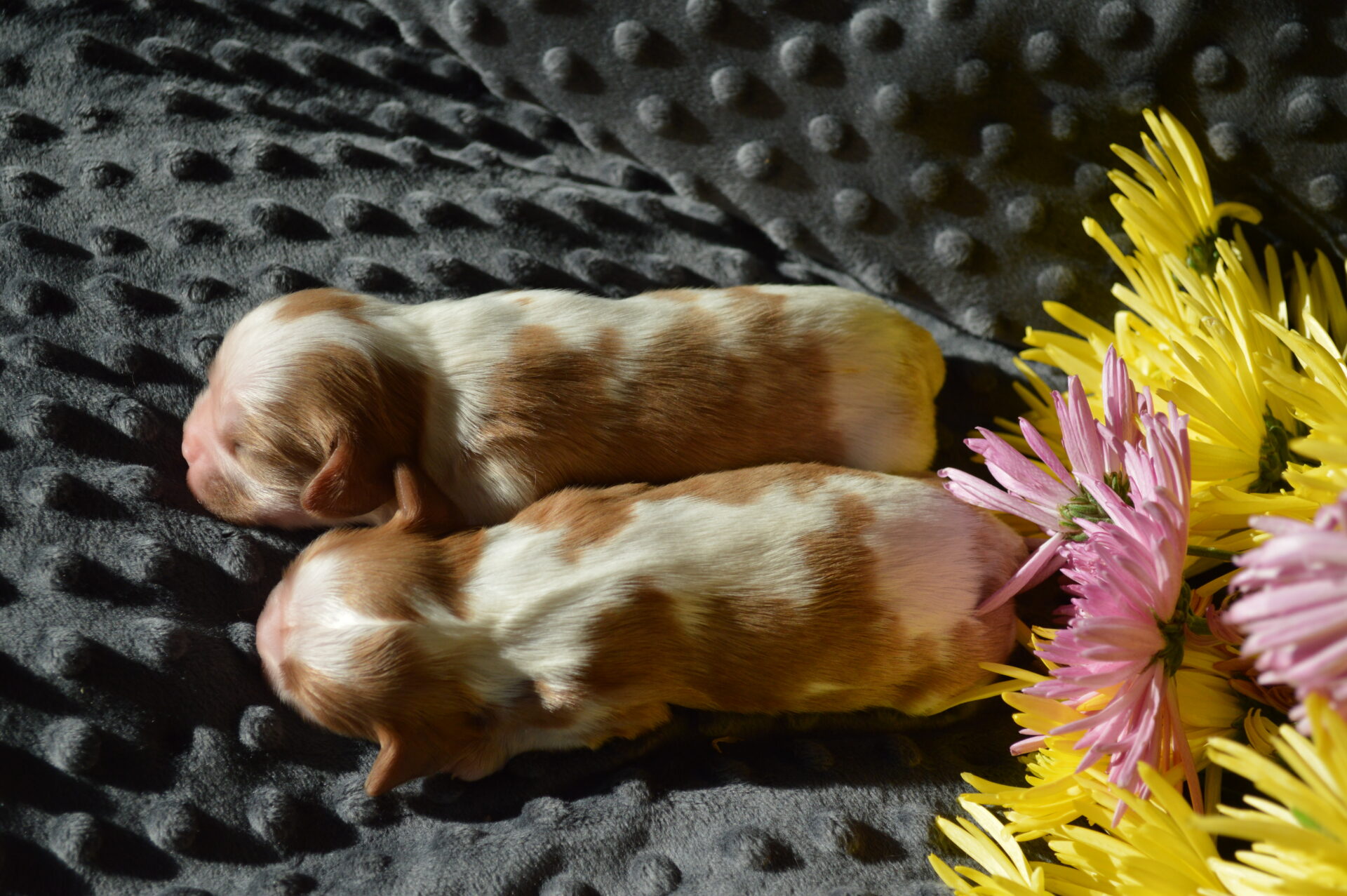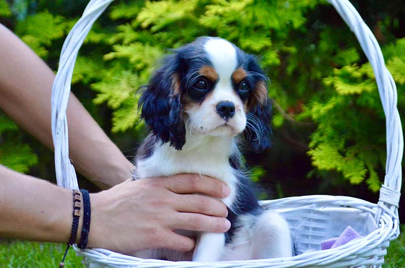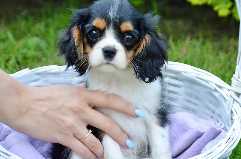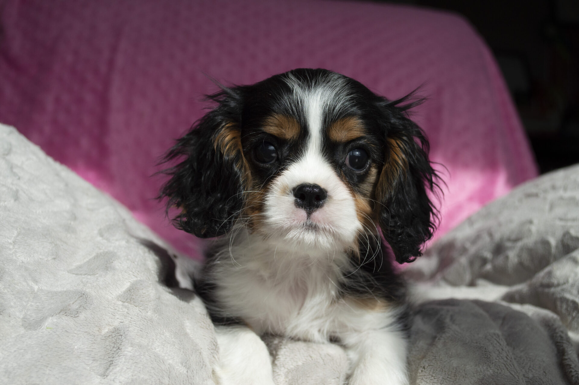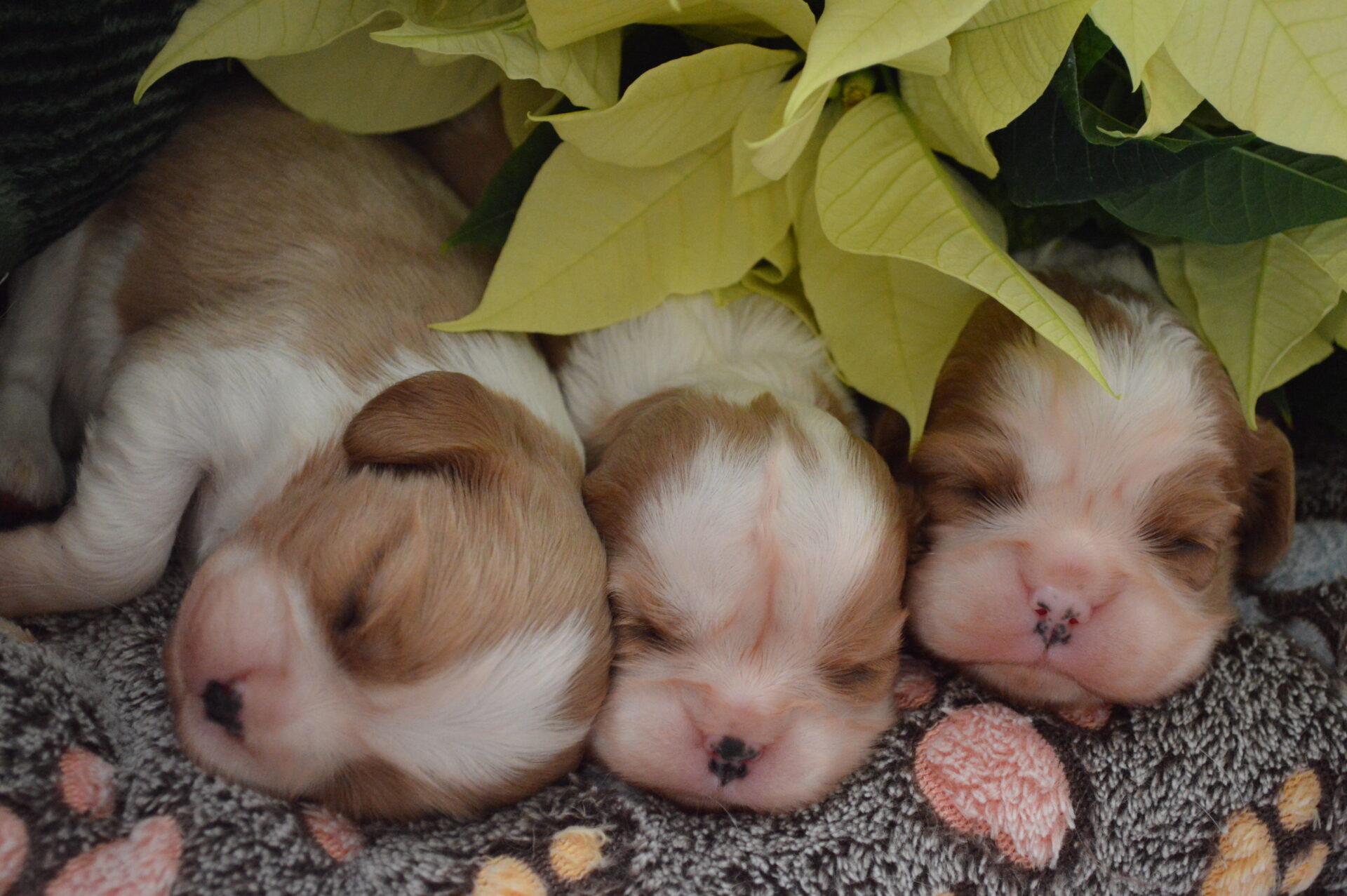 2 suczki blenheim, 1 suczka tricolor, 1 piesek tricolor, 1 piesek blenheim