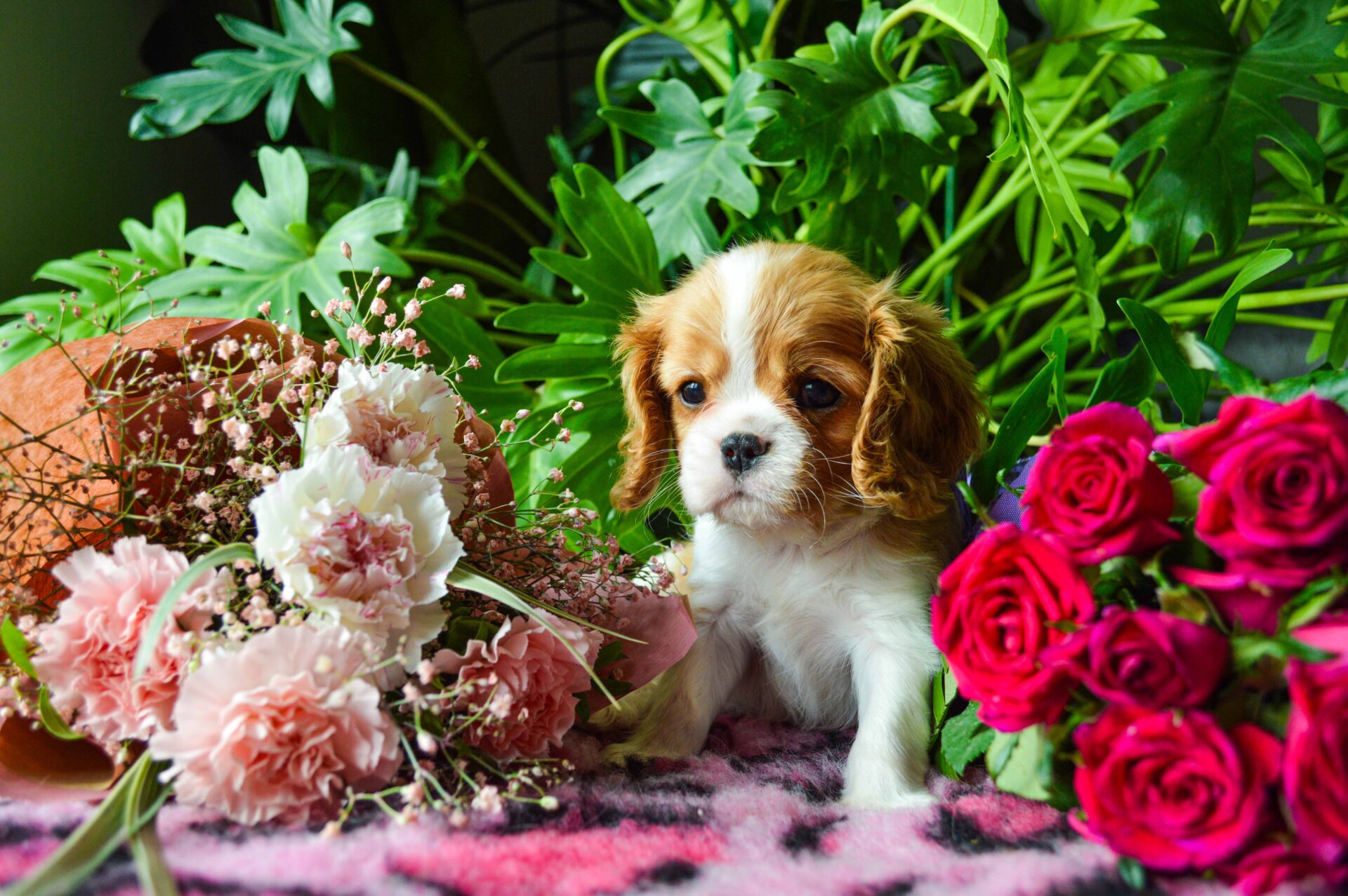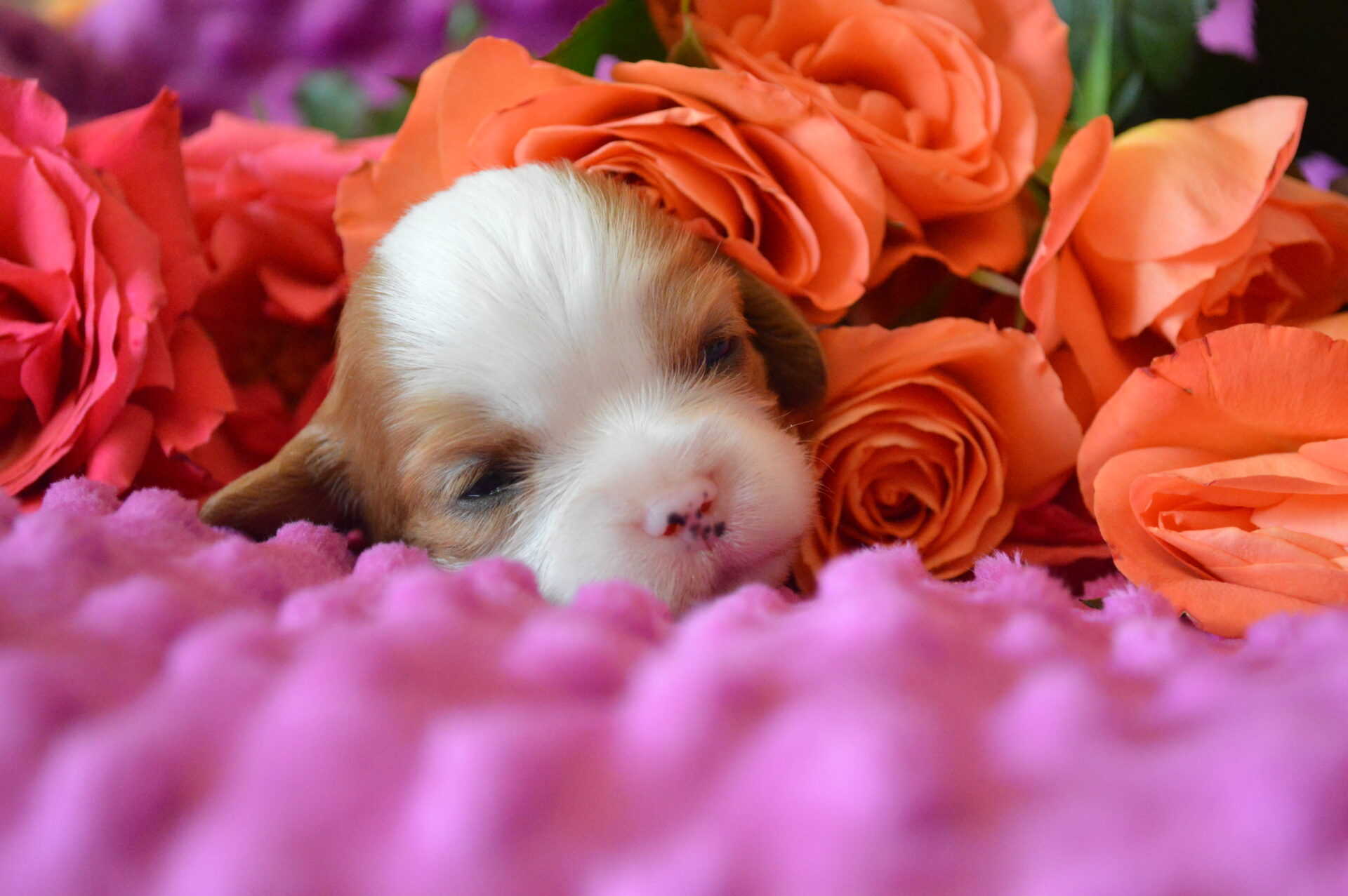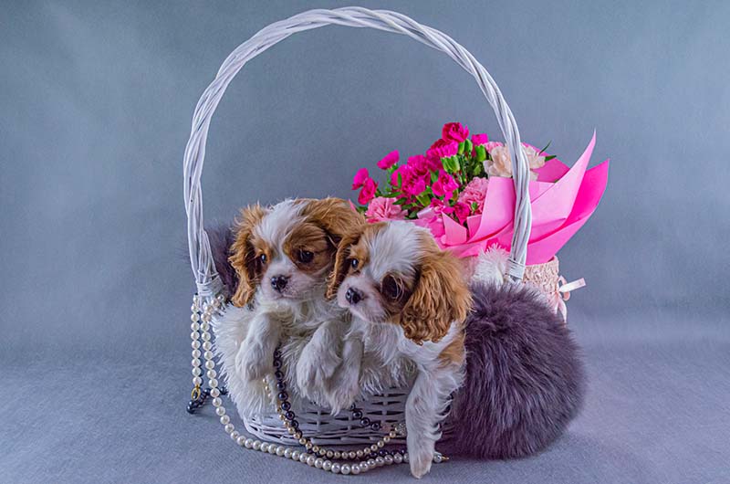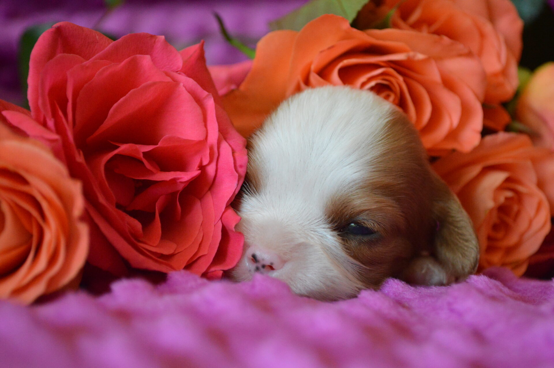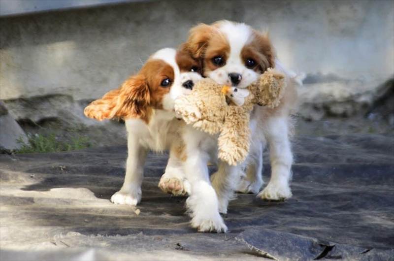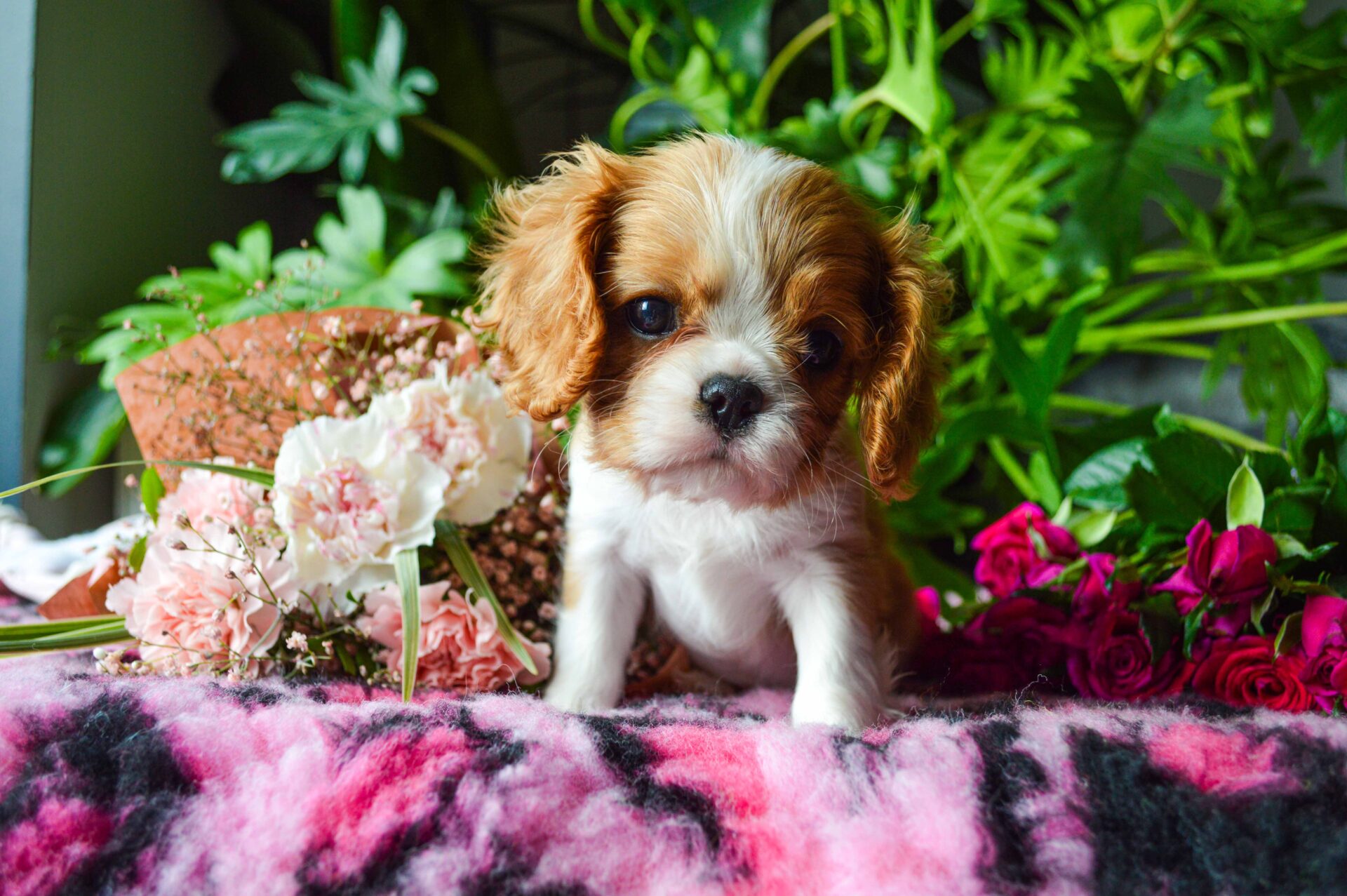 2 suczki blenheim, 1 suczka tricolor, 1 piesek tricolor, 1 piesek blenheim